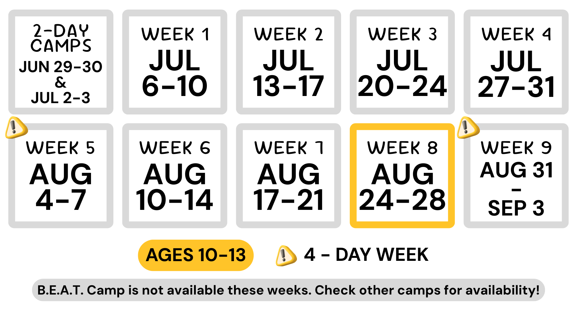 - The B.E.A.T. program includes 2 staff per 20 campers (ratio of 1:10).